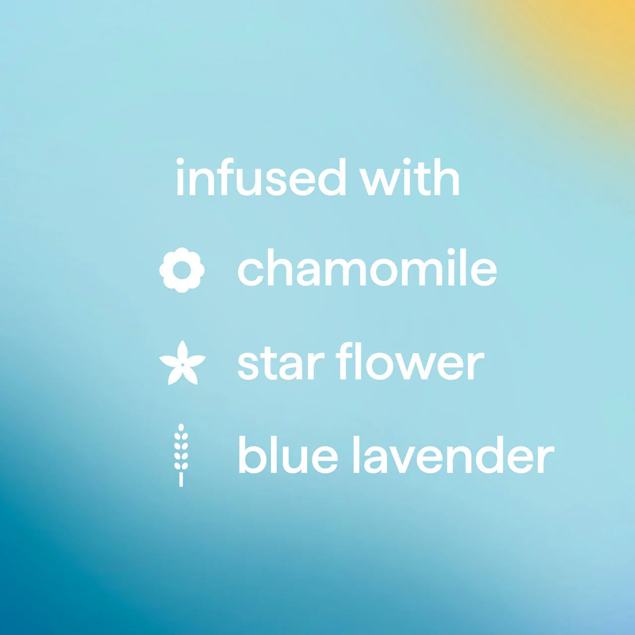 • Infused with chamomile, starflower + blue lavender.