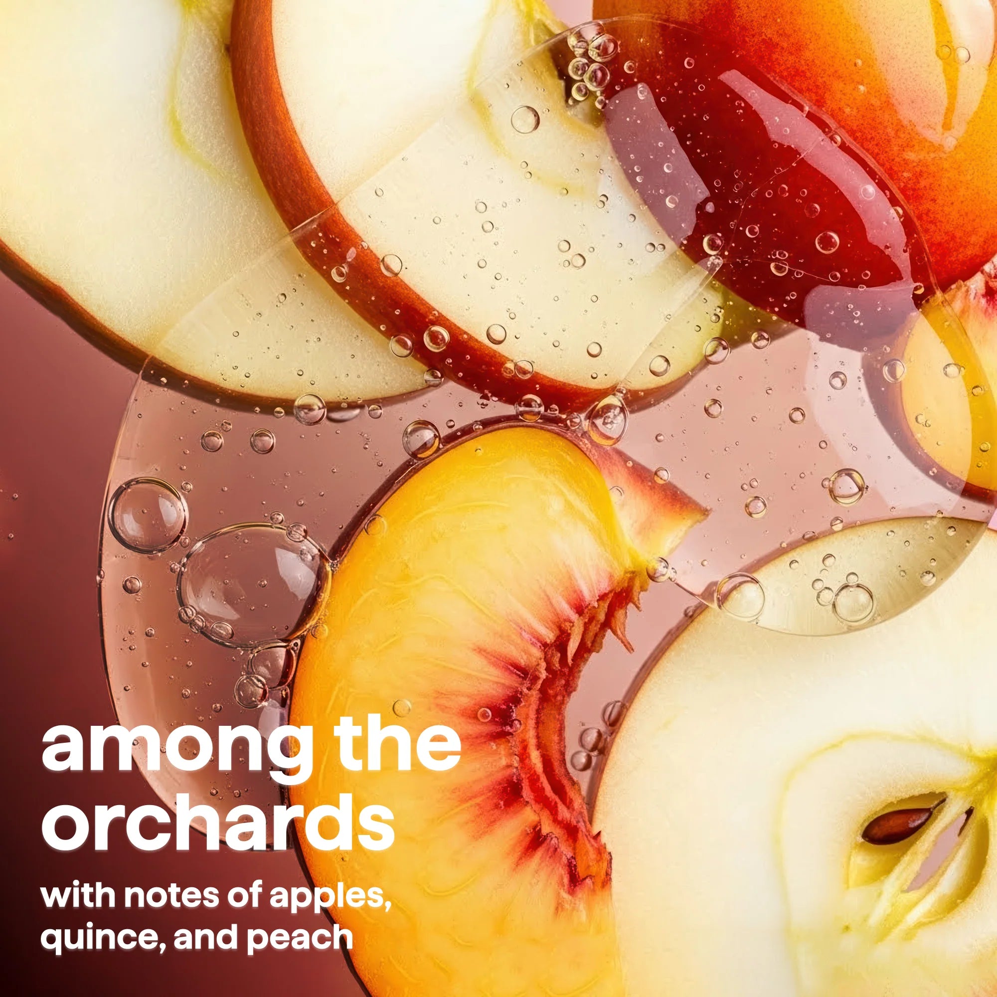 • SCENTS THAT WHISK YOU AWAY: to a golden hour orchard with notes of apples, quince, and peach.